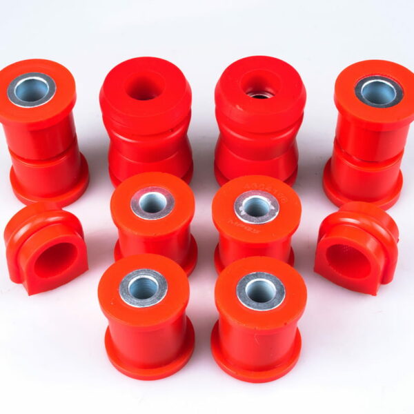 Nissan Terrano II (93-06) Zestaw zawieszenia przedniego Kompletny zestaw zawieszenia - MPBS: 4304102 MPBS KOD: 4304102 Twardość:80ShA lub 90ShA W skład zestawu wchodzą: - 2szt. Tuleja wahacza przedniego dolnego (przednia) - nr. MPBS: 4304106 - 4szt. Tuleja wahacza przedniego górnego - nr. MPBS: 4304108 - 2szt. Tuleja wahacza przedniego dolnego tylna - nr. MPBS: 4304107 - 2szt. Tuleja stabilizatora przedniego - nr. MPBS: 4304129 (proszę wybrać średnicę) Liczba zestawów potrzebna na samochód: 1kpl. Pasuje do: - Nissan Terrano II - Ford Maverick I