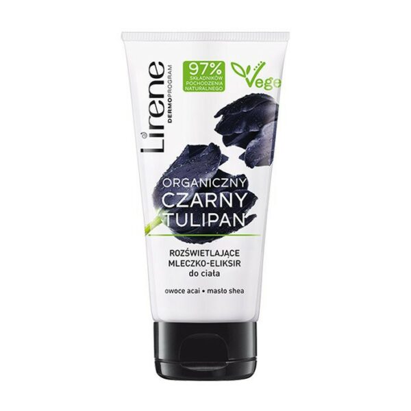 Lirene Czarny Tulipan Rozświetlające Mleczko Eliksir Do CiałaLirene Czarny tulipan to seria kosmetyków do pielęgnacji ciała, opartych na skuteczności rzadkiej i unikalnej rośliny - czarnego tulipana. Produkty z linii Lirene Czarny tulipan pielęgnują skórę długotrwale chroniąc jej piękno i młodość, poprzez redukcję stresu oksydacyjnego i wzmocnienie struktury skóry, poprawę elastyczności i nawilżenie.poprawa elastyczności skórynawilżeniedziałanie antyoksydacyjneLirene Czarny tulipan Rozświetlające mleczko-eliksir do ciała o aksamitnej konsystencji intensywnie nawilża, nadaje jedwabistą miękkość oraz odżywia skórę. Zawarte w mleczku drobinki rozświetlają skórę, nadając jej świeży i promienny wygląd. Lekka, wegańska formuła o przyjemnym zapachu doskonale się wchłania. Organiczny czarny tulipan uelastycznia i nawilża skórę oraz działa antyoksydacyjnie. Naturalny wyciąg z owoców acai poprawia mikrokrążenie i odświeża koloryt skóry oraz jest naturalnym filtrem przeciwsłonecznym. Masło shea odżywia i wzmacnia.Stosowanie: Odpowiednią ilość mleczka nanieś na oczyszczoną skórę ciała, a następnie delikatnie wmasuj do czasu jego wchłonięcia. Stosuj 1-2 razy dziennie w zależności od upodobań.Pojemność: 150ML