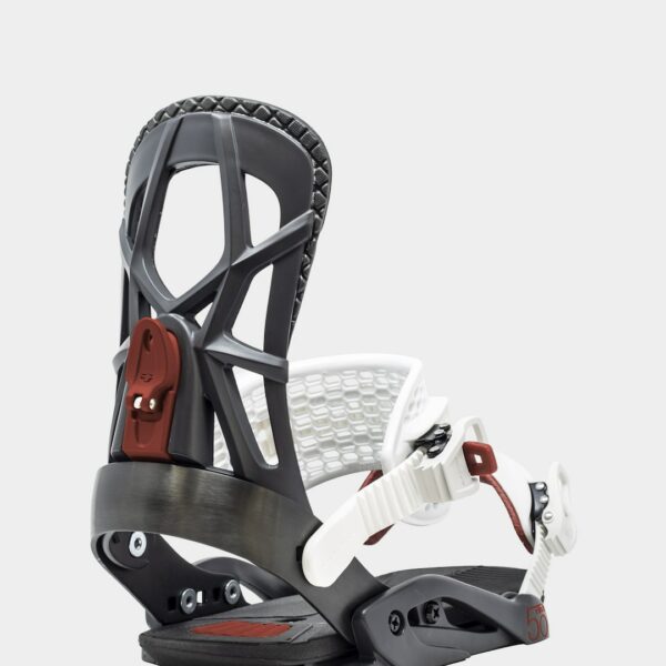 Wiązania Drake Fifty – produkowane przez ponad 20 lat ale wciąż nic nie wskazuje żeby miało się to zmienić. Wcale nie dziwi ten fakt ponieważ Fifty jest najczęściej wybieranym modelem przez kupujących, którzy cenią sobie komfort i responsywność tego wiązania. Podstawa wiązania Delta Light mieszanka wysokiej jakości aluminium oraz wytrzymałych włókien nylonowych zapewnia doskonałe „czucie deski” oraz świetnie tłumi wibrację podczas wstrząsów. Aluminiowe pompki Mg12 gwarantują szybkość wpięcia oraz wyśmienite trzymanie. Górny strap w technologii MFC jest gwarancją komfortu oraz odpowiedniego flex’u. Tak więc kolejne 20 lat przed nami • Delta Light – lekka baza wiązania z systemem amortyzacji • Toe Glove – poliuretanowy cap strap • Pro choice – wybierany przez team rider’ów • Bond Toolness – regulacja wiązań bez konieczności użycia narzędzi • Mg12 – pompki z magnezu • Natural Cant - pozwala na wygodniejszą pozycję do jazdy, zwłaszcza przy szerszym rozstawie wiązań • Responsywność: 6 • *Możliwość dokupienia kompletu uniwersalnych dysków Drake Ultimate Disc, który pozwala na przykręcenie wiązań do desek Burton z systemem The Channel