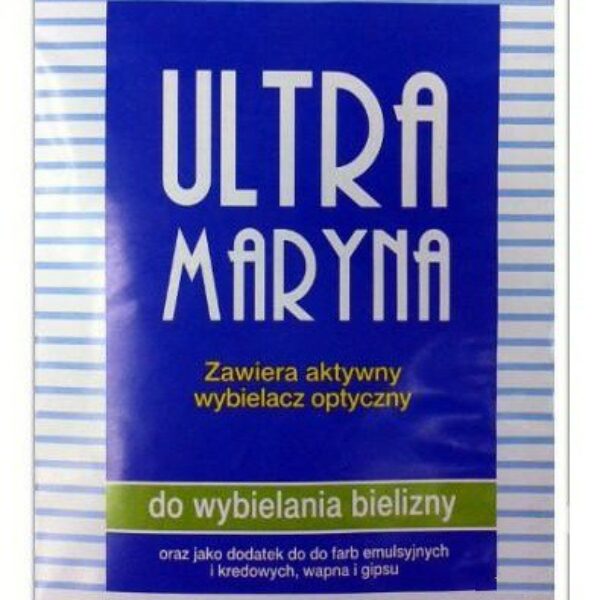 Ultramaryna Wybielacz Do Bielizny I Firanek 1KGJest to pigment o barwie niebieskiej. Stosowany jako środek wybielający lub barwiący na kolor niebieski w zależności od użytej ilości. Zawiera aktywny wybielacz optyczny. Ultramarynę stosuję się:Do wybielania bielizny i firanekJako dodatek do farb emulsyjnych i klejowychJako dodatek do gipsu i wapnaSposób użycia: Przed użyciem rozpuścić i wymieszać w niewielkiej ilości wodyNieograniczony termin ważności
