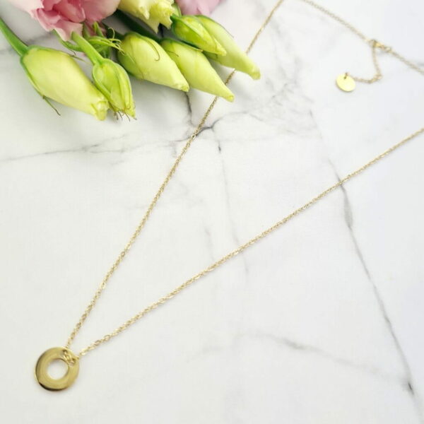 Naszyjnik Celebrytka kółko ażurowe Naszyjnik z jednym medalionem klasyczne złote kółeczko ażurowe. Łańcuszek zwany "celebrytką" to bardzo modny dodatek który szczególnie przypadł do gustu wielu kobietom. Delikatny łańcuszek w połączeniu z subtelnymi zawieszkami stał się bardzo popularny wśród gwiazd ekranu, wybiegów mody czy mediów społecznościowych. Stal chirurgiczna: Wykonany z wysokiej jakości stali chirurgicznej 316L zwanej także nierdzewną lub szlachetną. Stal chirurgiczna 316L: ❤ nie zmienia koloru ❤ nie uczula ❤ nie reaguje z wodą!! Można jej praktycznie nie zdejmować. Biżuteria pozłacana (platerowana) 18k złotem oraz zabezpieczona lakierem jubilerskim który nadaje piękny połysk i zabezpiecza złocenie. Wymiary: długość całkowita łańcuszka 43 cm. Możliwość regulacji i zapięcia także na 43, 41 i 40 cm. Przywieszka kółko 1 cm Biżuteria jest antyalergiczna. Swój blask i kolor zachowa przez długi czas!! Świetna jakość wykonania.