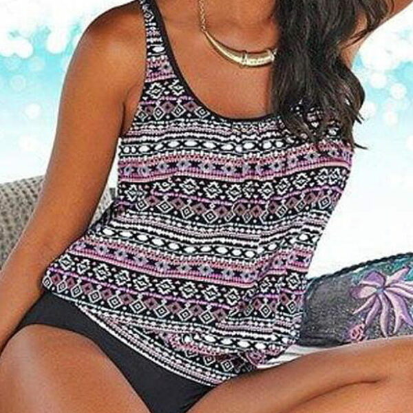 Strój jednoczęściowy plus size styl elegancki dekolt u na ramiączkach nadruk granatowy