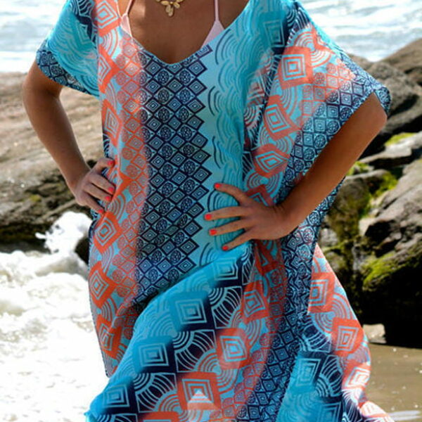 Kimono ponczo sukienka dekolt v nadruk kolorowy