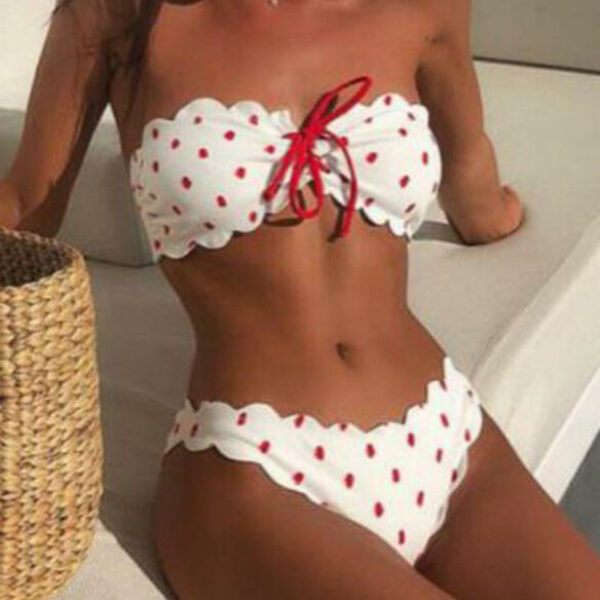 Bikini styl słodki sznurowany ściągacz groszki off the czerwony