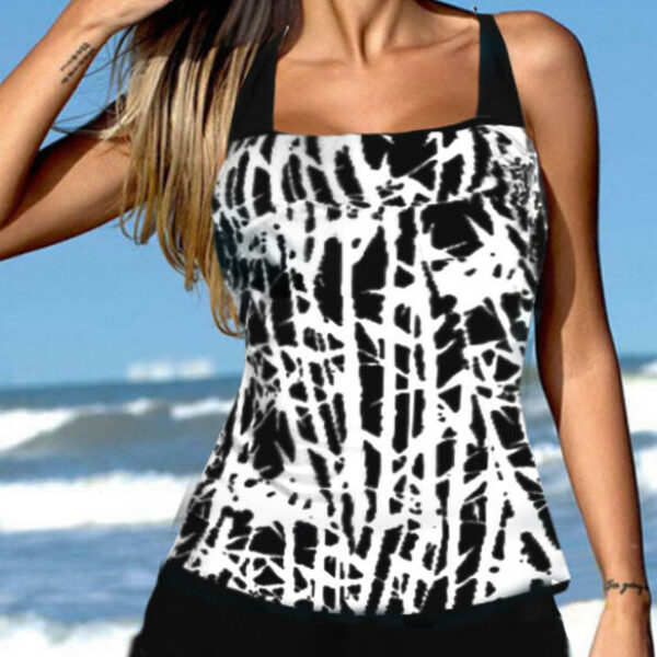 Tankini szorty styl boho styl retro plus size dekolt u na ramiączkach połączone kolory w paski czarny