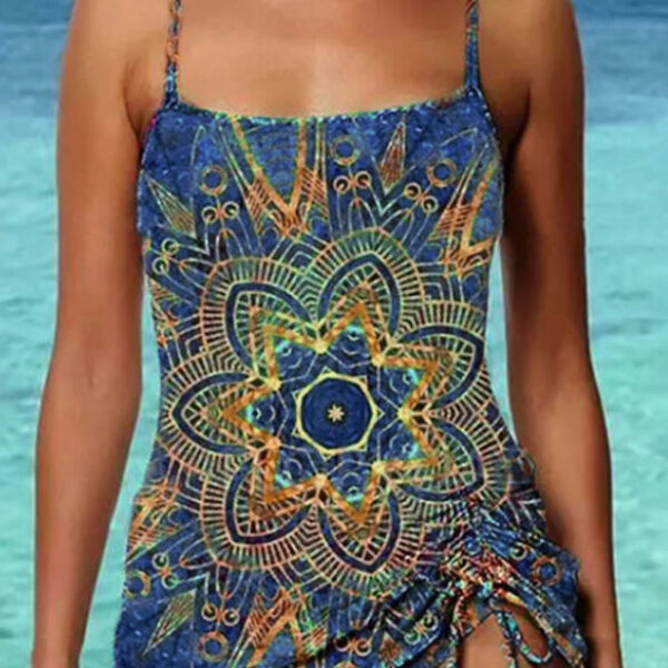 Tankini szorty styl casual styl vintage dekolt u na ramiączkach kwiaty nadruk niebieski