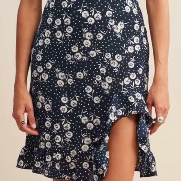 Spódnica lato wiosna przed kolano syrena kwiaty nadruk codzienny casu granatowy