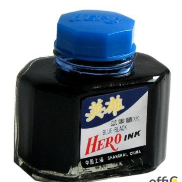 Atrament Hero Atrament o wysokiej jakości do piór wiecznych, dostępny w kolorach: czarnym, granatowym i niebieskim. Pojemność: 59ml