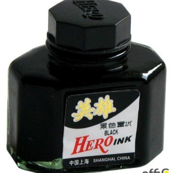 Atrament Hero Atrament o wysokiej jakości do piór wiecznych, dostępny w kolorach: czarnym, granatowym i niebieskim. Pojemność: 59ml