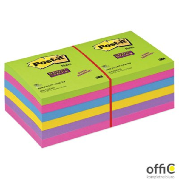 Bloczek samoprzylepny POST-IT_ Super Sticky (654 -12SSUC), 76x76mm, 1x90 kart., neonowe