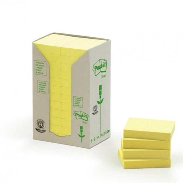 653-1T Bloczki ekologiczne Post-it , - żółte, - 24 sztuki po 100 kartek, 38 x 51 mm - jednostka sprzedazy 1 opakowanie