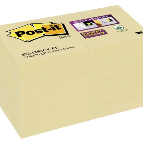 622-12SSCY-EU Bloczek samoprzylepny Post-it Super Sticky, żółty, 12 sztuk po 90 kartek, 51x51 mm