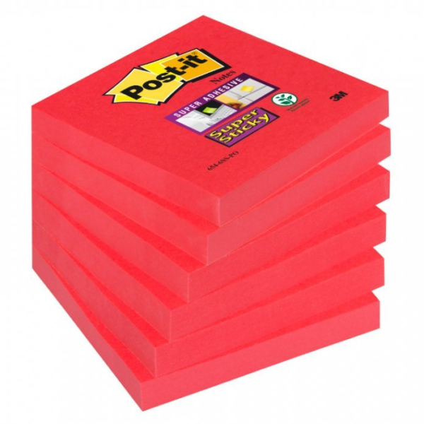 654-6SS-PO Bloczek samoprzylepny Post-it Super Sticky, czerwień, 6 sztuk po 90 kartek, 76x76 mm
