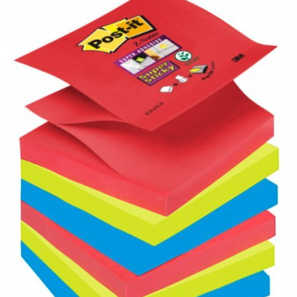 Bloczek samoprzylepny POST-IT_ Super sticky Z-Notes (R330-6SS-JP), 76x76mm, 6x90 kart., paleta Bora Bora