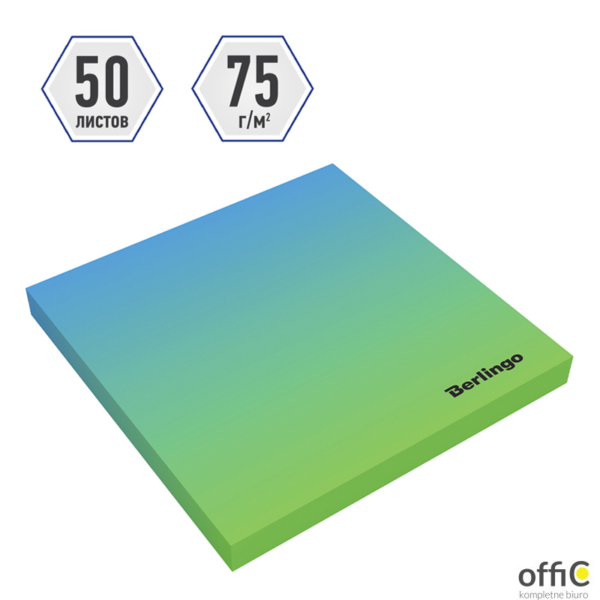 Bloczek samoprzylepny Ultra Sticky.Radiance,75 x75mm, 50 kart., gradient. j.nieb. / j.zielo. 295148/14466 Berlingo