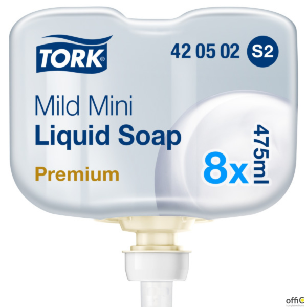 System S2. Pojemność 475 ml. Mydło w płynie mini Tork Premium delikatne. Kolor kremowy. 475 ml = 475 dawek