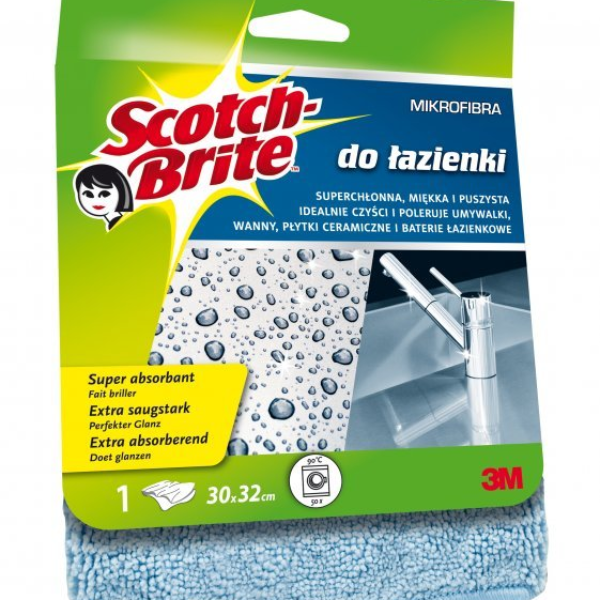 Scotch Brite Mikrofibra do łazienki - uniwersalna ściereczka z mikrofibry do czyszczenia powierzchni łazienkowych - idealnie nabłyszcza wszystkie powierzchnie emaliowane, metalowe - specjalna struktura mikrowłókien i grubość tkaniny nadaje wysokie właściwości absorbcyjne, ściereczka świetnie chłonie wodę - do czyszczenia na sucho i na mokro - nie wymaga stosowania detergentów - antyalergiczna i antystatyczna - wymiar: 18x22,5cm - jednostka sprzedaży 1 sztuka