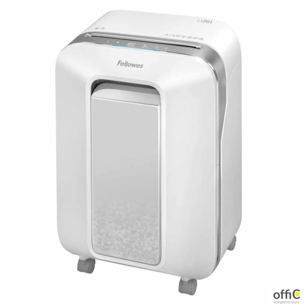 Przedstawiamy serię urządzeń LX od Fellowes, producenta pierwszej niszczarki osobistej. Zastosowanie w niszczarkach rewolucyjnych rozwiązań pozwala na maksymalizację wydajności niszczenia i oszczędność czasu. Innowacyjna technologia komunikacji z użytkownikiem IntelliBar_ posiada 5 funkcji, które zapewniają eliminację zacięć, bezpieczeństwo, wysoką wydajność i łatwość niszczenia____Niszczarka przeznaczona do użytku w małym biurze przez 1 osobę__Jest w stanie zniszczyć na raz do 12 kartek (70g) formatu A4__Niszczy dokumenty na mikrościnki o wymiarach 2 x 12 mm. Kartka A4 jest niszczona na ponad 2500 ścinków, urządzenie idealnie nadaje się do niszczenia_dokumentów zawierających poufne dane__Cięcie na mikrościnki pozwala na pomieszczenie większej ilości zniszczonych dokumentów w koszu__Niszczarka zapewnia wysoki poziom zabezpieczenia niszczonych materiałów: P-5 w przypadku dokumentów papierowych i T-5 dla kart kredytowych__Może niszczyć dokumenty ze zszywkami i małymi spinaczami, karty kredytowe__Posiada funkcję cofania, wyposażona w elektroniczny start/stop co ułatwia użytkowanie i zapobiega zakleszczeniom papieru__Szczelina wejściowa o szerokości 230 mm__Możliwość wyjęcia kosza, kosz o pojemności 22 litrów__Obudowa wyposażona w kółka ułatwia przenoszenie urządzenia__2 lata gwarancji na urządzenie, 5 lat na noże tnące_____Funkcje wyświetlacza IntelliBAR_:____Sensor czasu pracy. Urządzenie ostrzega kiedy jego czas pracy ciągłej jest bliski końcowi i musi schłodzić podzespoły__Czujnik wydajności pracy. Czujnik wykrywa czy jest możliwość włożenia większej ilości kartek.__100% Jam Proof_. Automatycznie wykrywa możliwe zacięcia i zwiększa moc, aby im zapobiec___Wskaźnik zapełnienia kosza. Urządzenie informuje kiedy kosz na ścinki jest bliski zapełnienia i potrzeba go opróżnić__SafeSense_. Opatentowany czujnik bezpieczeństwa, który zatrzymuje pracę noży w momencie dotknięcia szczeliny wejściowej przez ludzi lub zwierzęta.______