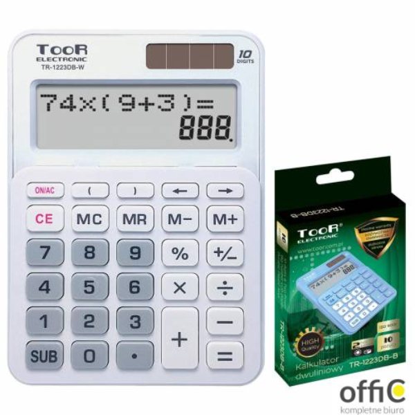 Kalkulator dwuliniowy TOOR TR-1223DB-W 10-pozycyjny biały 120-1900