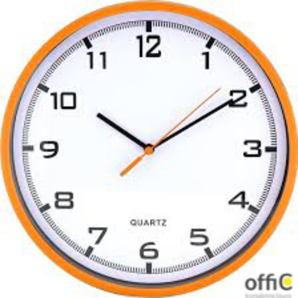 Zegar ścienny plastikowy 25,5 cm, pomarańcz.z białą tarczą MPM E01.2478.60.A