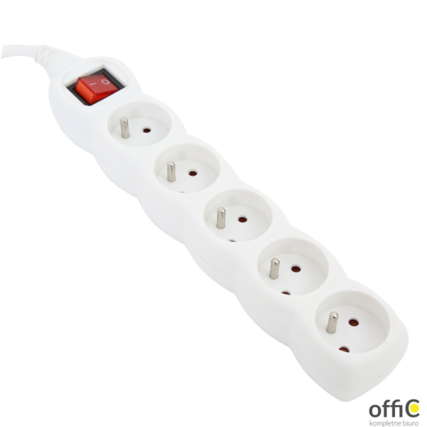 Listwa zasilająca typ E French z 5 gniazdkami z uziemieniem z wyłącznikiem Długość kabla 3.0m, średnica żyły 1.5mm2 Dostosowane jest do obciążenia prądem do 16A Osłona bezpieczeństwa przed dziećmi wbudowana w każdym gniaździe Wysokiej jakości niepalna obudowa z tworzywa sztucznego Zalecana do komputerów, innych urządzeń biurowych i sprzętu gospodarstwa domowego kolor biały