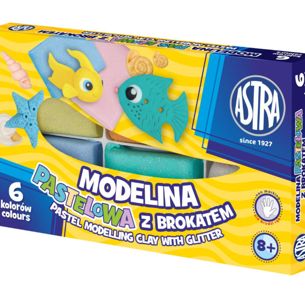 Modelina pastelowa z brokatem Astra 6 kolorów, 304118001