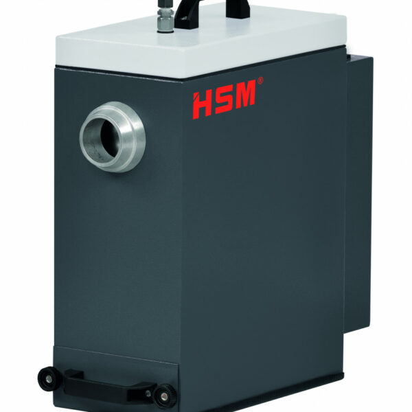 Odpylacz HSM DE 1-8. Kompaktowy i wydajny odpylacz do pyłów klasy M jest doskonałym uzupełnieniem urządzenia do produkcji wypełniaczy HSM ProfiPack. Zapewnia niezawodne usuwanie cząstek pyłu i kartonu.