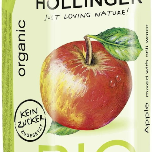 SKŁADNIKIsok jabłkowy* (60%), woda (*certyfikowany składnik ekologiczny) OPISBez dodatku cukru. Zawiera naturalnie występujące cukry. Produkt pasteryzowany WARTOŚĆ ODŻYWCZA W 100 gWartosc energetyczna: 118,2 kJ / 27,6 kcalTłuszcz: < 0,10 gw tym kwasy tłuszczowe nasycone: <0,10 gWeglowodany: 6,60 gw tym cukry: 6,30 gBiałko: <0,10 gSól: <0,01 g ZALECANE WARUNKI PRZECHOWYWANIAPrzechowywać w suchym i chłodnym miejscu