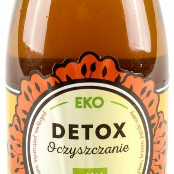 SKŁADNIKIwoda (90%), miód*, ekstrakt z: liści pokrzywy*, owoców czarnego bzu*, ziela wiązówki*, ziela ostrożenia*, natki pietruszki*, liści brzozy*, ziela rdestu ptasiego*, buraka ćwikłowego*, pączków sosny* (certyfikowany składnik ekologiczny) OPISNapój na bazie ziół, lekko dosładzany miodem przeznaczony do bezpośredniego spożycia. Może posiadać naturalny osad. WARTOŚĆ ODŻYWCZA W 100 mlWartosc energetyczna: 16,4 kJ / 69,51 kcalTłuszcz: <0,07 gw tym kwasy tłuszczowe nasycone: 0 gWeglowodany: 3,70 gw tym cukry: 2,71 gBłonnik: 0,38 gBiałko: 0,21 gSól: <0,05 g ZALECANE WARUNKI PRZECHOWYWANIAPrzechowywać w suchym i chłodnym miejscu, po otwarciu w lodówce.