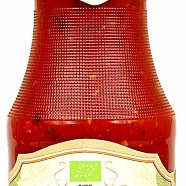 SKŁADNIKIPrzecier pomidorowy* 92%, sok z pigwowca*, cukier trzcionwy*, ocet jabłkowy*, czosnek*, sól kamienna, bazylia*, majeranek*, papryka ostra*, 0,1% imbir*, oregano* (*certyfikowany składnik ekologiczny) OPISOpakowanie zawiera 10 sugerowanych porcji produktu. Rozwarstwienie produktu jest naturalnym procesem i nie stanowi wady. Produkt pasteryzowany WARTOŚĆ ODŻYWCZA W 100 gWartość energetyczna: 198 kJ / 47 kcalTłuszcz: 0,4 gw tym kwasy tłuszczowe nasycone: 0,1 gWęglowodany: 9,5 gw tym cukry: 7,6 gBiałko: 1,3 gSól: 1,1 g ZALECANE WARUNKI PRZECHOWYWANIAPrzechowywać w suchym i chłodnym miejscu. Po otwarciu w lodówce