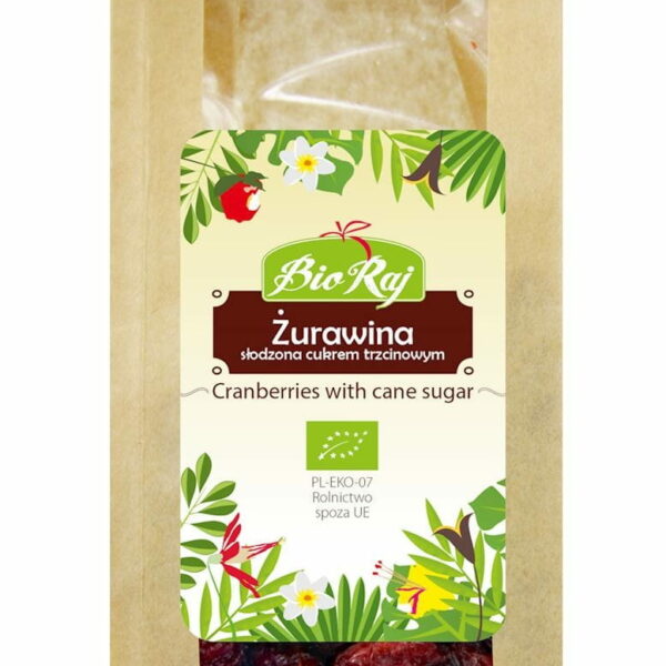 Żurawina słodzona cukrem trzcinowym BIO 100 g - Bio Raj