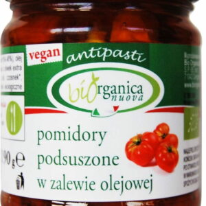 SKŁADNIKIpomidory*, sok pomidorowy* (*certyfikowany składnik ekologiczny) WARTOŚĆ ODŻYWCZA W 100 gWarość energetyczna: 111 kJ / 26 kcal;Tłuszcz: 0,0 g;w tym kwasy tłuszczowe nasycone:Węglowodany: 4,6 g;w tym cukry:Białko: 1,2 g;Sól: ZALECANE WARUNKI PRZECHOWYWANIAPrzechowywać w suchym i chłodnym miejscu