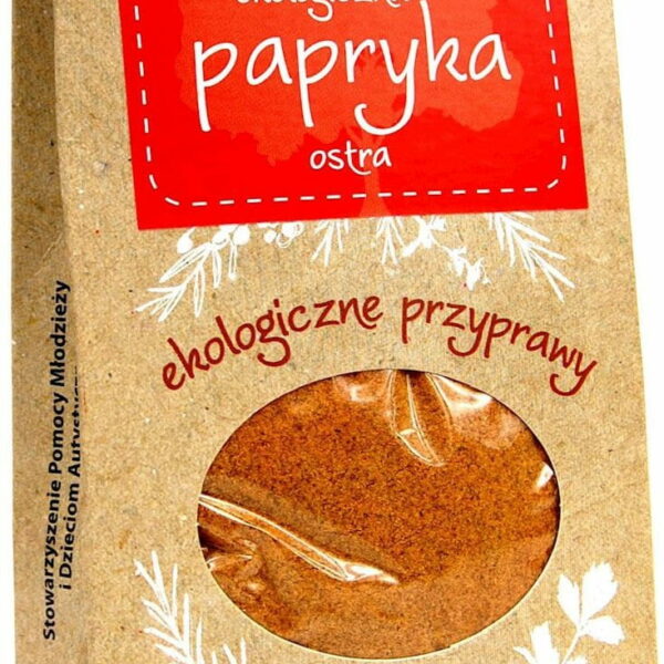 SKŁADNIKIpapryka* 100% (*certyfikowany składnik ekologiczny) OPISPapryka ostra nadaje potrawom szczególnie pikantny smak. Dodaje się ją w niewielkich ilościach do gulaszu, mięs ryb, zup, potraw jarzynowych i sosów. ZALECANE WARUNKI PRZECHOWYWANIAPrzechowywać w suchym miejscu