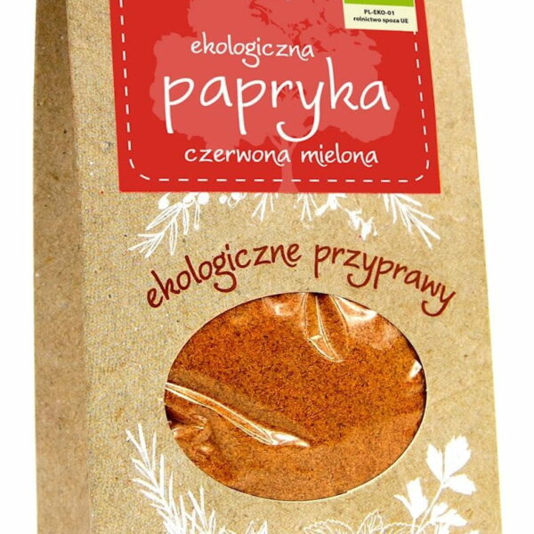 SKŁADNIKIPapryka czerwona mielona* 100% (*certyfikowany składnik ekologiczny) OPISUżywa się jej do sałatek i surówek oraz przyrządzania wielu potraw np. gulaszu i sosów. ZALECANE WARUNKI PRZECHOWYWANIAPrzechowywać w suchym miejscu.