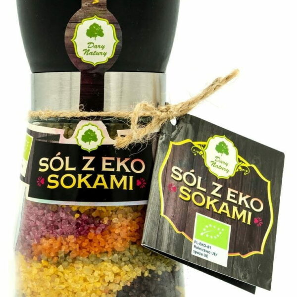 SKŁADNIKIsól morska, sok z jarmużu*, pigwowca*, buraka*, karczocha*, aronii*, róży*, pomidora*, borówki*, ogórecznika*, pokrzywy*, kurkuma* (*certyfikowany składnik ekologiczny) OPISSól wytworzono specjalnie przygotowaną metodą polegającą na nasączaniu sokami z owoców i warzyw. ZALECANE WARUNKI PRZECHOWYWANIAPrzechowywać w suchym i chłodnym miejscu.