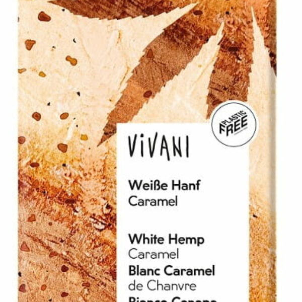 Czekolada biała waniliowa z karmelizowanymi nasionami konopi BIO 80 g - Vivani
