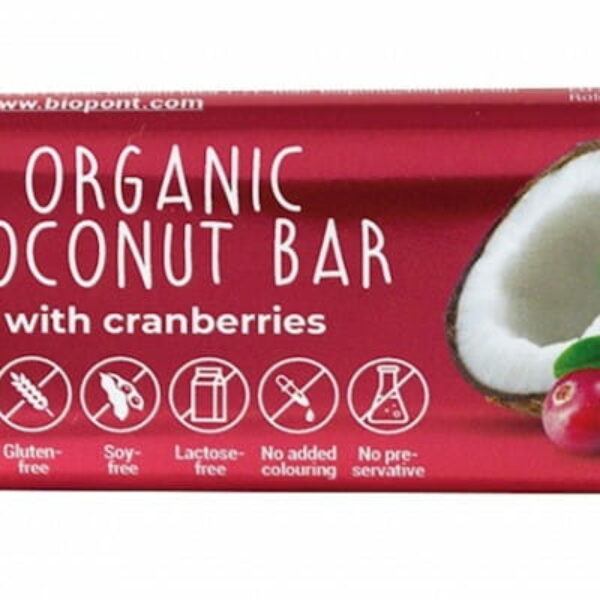 Baton kokosowy z żurawiną bezglutenowy BIO 30 g - BioPont