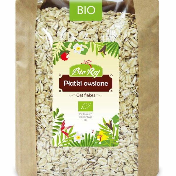 SKŁADNIKI płatki owsiane* 100% (*certyfikowany składnik ekologiczny) OPIS Ekologiczne płatki owsiane uzyskuje się z gniecionych ziaren owsa. Płatki owsiane to doskonała propozycja na codzienne śniadanie. Najlepiej smakują z dodatkiem jogurtu, napoju zbożowego oraz z owocami. SPOSÓB PRZYGOTOWANIA płatki gotować w proporcji 1:2 (1 porcja płatków na 2 porcje wody lub mleka) na wolnym ogniu ok. 10 minut od czasu do czasu mieszając. WARTOŚĆ ODŻYWCZA W 100 g Wartość energetyczna - 1567 kJ / 372 kcal Tłuszcz - 7,1 g,w tym kwasy tłuszczowe nasycone - 1,3 g Węglowodany - 58 g,w tym cukry - 0 g Białko - 14 g Sól - 0,02 g INFORMACJA ALERGENNA Produkt może zawierać alergeny: orzeszki ziemne, orzechy, sezam, soję. ZALECANE WARUNKI PRZECHOWYWANIA Przechowywać w suchym i chłodnym miejscu.