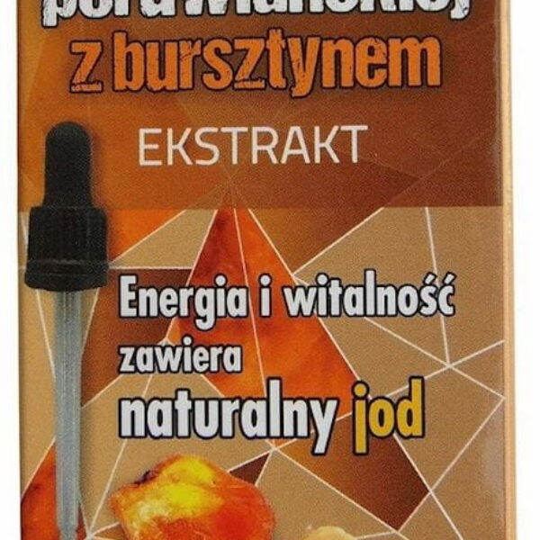 SKŁADNIKI50 % ekstrakt z macy (pieprzyca peruwiańska)* (ekstrahent 70 % alkohol), 50 % ekstrakt z bursztynu* (ekstrahent 70 % alkohol) (*certyfikowany składnik ekologiczny). Składniki czynne: kwas bursztynowy, terpeny: kamfora, cymen, limonen, borneol, alkaloidy, polifenole: flawonoidy, antocyjanyOPISSuplement diety. 3 ml ekstraktu zawierają 0,423 mg kwasu bursztynowego. Maca wspomaga sprawność fizyczną i psychiczną, pomaga w utrzymaniu optymalnej wytrzymałości, uczuć i witalności.ZALECANE SPOŻYCIE3 ml/dzień (4 ml = 1 łyżeczka). Nie należy przekraczać zalecanej porcji do spożycia w ciągu dnia. Zróżnicowany sposób żywienia oraz zdrowy tryb życia są podstawą prawidłowego funkcjonowania organizmu. Suplement diety nie może być stosowany jako substytut (zamiennik) zróżnicowanej diety. UWAGANie zaleca się stosować przez kobiety w ciąży, kobiety karmiące i dzieci poniżej 18 roku życia. Produkt zawiera 96 % etanol. Może osłabić zdolność kierowania pojazdami mechanicznymi.ZALECANE WARUNKI PRZECHOWYWANIAPrzechowywać w chłodnym i zacienionym miejscu, w sposób niedostępny dla małych dzieci.