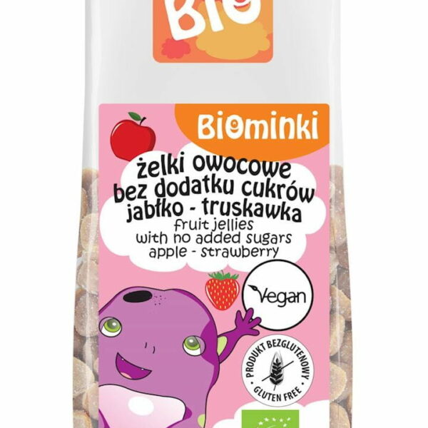 ŻELKI OWOCOWE BEZ DODATKU CUKRÓW JABŁKO - TRUSKAWKA BIO 75 g - BIOMINKI