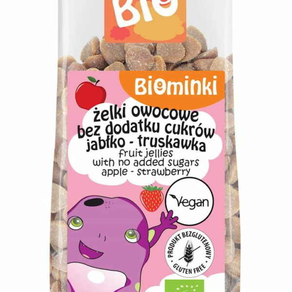ŻELKI OWOCOWE BEZ DODATKU CUKRÓW JABŁKO - TRUSKAWKA BIO 150 g - BIOMINKI