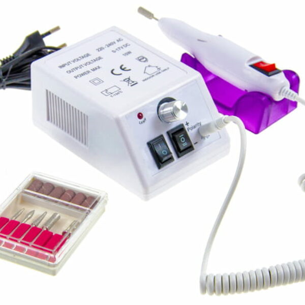 FREZARKA DO PAZNOKCIELEKTRYCZNA Prędkość obrotu: do 20000 obr/minDługość rączki: 130mmNapięcie: 220-240V/50HzMoc: 10WWymienne frezy: Tak Najlepsze urządzenie kosmetyczne do paznokci w stosunku ceny do jakości. Posiada bazę sterującą, osobno podłączaną rękojeść, wielokrotny system bezpieczeństwa oraz płynną regulację prędkości. Frezarka stworzona jest dla małych salonów kosmetycznych, osób pracujących zdalnie oraz do zastosowania domowego. Zalety urządzenia: - profesjonalne zastosowanie- świetne dla kosmetyczek pracujących zdalnie oraz salonów- łatwe w obsłudze- wielokrotny system zabezpieczeń- praktyczna dioda od zasilania- płynna regulacja prędkości - cicha i płynna praca W zestawie: - baza frezarki- frezarka elektryczna- podstawka pod rękojeść- zasilacz sieciowy- 6 sztuk opasek szlifierskich- 6 frezów podstawowych- trzpień do mocowania ściernic Uwaga: kolor może się różnic od przedstawionego na zdjęciu (w zależności od dostawy)