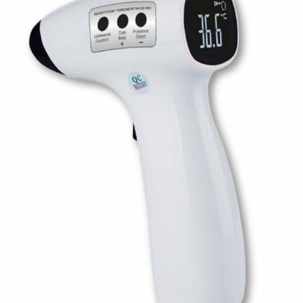 TECH - MEDTermometr bezdotykowy TM-F05 PRO Najwyższa dokładność, wiarygodność, szybkość pomiaru Funkcja alarmu w przypadku podwyższonej temperatury ciała Funkcja pamięci z zachowaniem wartości 32 ostatnich wyników pomiaru Nowoczesny i wyraźny wyświetlacz LCD Niewielki rozmiar, przemyślana konstrukcja i wygodna obsługa Termometr bezdotykowy Tech-Med TM-F05 PRO na podczerwień zaprojektowano do pomiaru temperatury ciała lub wybranej powierzchni przy użyciu technologii promieniowania podczerwonego. Termometr na podczerwień jest prosty, higieniczny oraz precyzyjny. Dzięki TM-F05 PRO nie ma potrzeby wprowadzania sondy termometru do jakiejkolwiek części ciała twojego niemowlęcia. Śpiące niemowlę nie obudzi się podczas kiedy termometr będzie w użyciu ani nie odczuje żadnego dyskomfortu przy jego użycia kiedy nie śpi. Użytkownik musi jedynie nakierować sondę czujnika podczerwieni na czoło oraz nacisnąć przycisk pomiaru. Temperatura ciała zostanie pokazana na wyświetlaczu LCD w 0,5 sekundy. Termometr przeznaczony jest do pomiaru temperatury powierzchni ciała na czole dla niemowląt/małych dzieci i osób dorosłych bez kontaktu z ludzkim ciałem. Termometr może być również wykorzystany do pomiaru temperatury butelki niemowlęcia lub kąpieli albo temperatury pokojowej (przy zastosowaniu trybu przedmiot/object).Podstawowe cechy termometru bezdotykowego Tech-Med TM-F05 PRO: Stabilny i niezawodny czujnik podczerwieni o wysokiej precyzji pomiaru. Dobra wydajność oraz zdolność adaptacji w każdym środowisku. Szybki pomiar temperatury ciała, temperatury przedmiotów/otoczenia, dokonywany za pomocą jednego przycisku. Alarm podwyższonej temperatury ciała,możliwość ustawienia dowolnej wartości alarmu. Automatyczne zapamiętywanie ostatniego wyniku pomiarowego, 32 wyniki pomiarów w pamięci. Wyraźny wyświetlacz LCD, łatwy do odczytu. Dwie jednostki pomiaru temperatury: skala Fahrenheita i Celsjusza. Automatyczne wyłączanie się urządzenia po 30 s., w celu oszczędności energii. Niewielki rozmiar, przemyślana konstrukcja oraz łatwa obsługa.Specyfikacja: Termometr służy do pomiaru temperatury na czole, temperatury przedmiotów (np.mleka w butelce) Czas pomiaru: ≤ 1 sekundy Podświetlany wyświetlacz cyfrowy LCD Dwa tryby pomiaru temperatury: skala Fahrenheita i Celsjusza, do wyboru. Funkcja pamięci z zachowaniem wartości 32 ostatnich wyników pomiaru. Zakres pomiaru: temperatura ciała: 32,0°C – 42,0°C / 89,9°F – 109,2°F. Zakres pomiaru: temperatura powierzchni: 0,0°C – 100,0°C / 32,0°F – 212,0°F.Margines błędu pomiaru: w standardowych warunkach otoczenia: ±0,3°C. Odległość od miejsca dokonywania pomiaru: 1–5 cm. Tryb oszczędzania energii automatyczne wyłączenie: po upływie 30 s. Funkcja alarmu w wypadku podwyższonej temperatury ciała Zasilanie: DC3 V (baterie AAA/2 sztuki). Podstawowe wymiary: 100mm × 47mm × 152mm (długość × szerokość × wysokość). Waga: 139 g (bez baterii). Skład zestawu: Termometr2 baterie AAAWoreczek do przechowywania urządzeniaInstrukcja obsługi w języku polskimGwarancja: 36 miesięcy