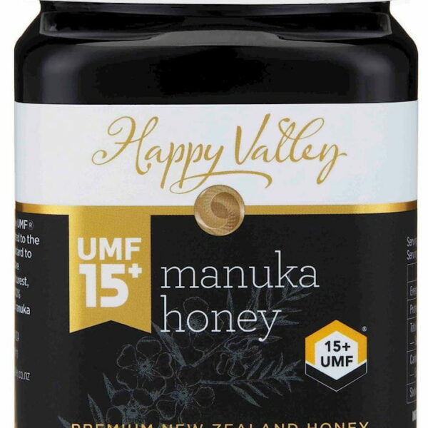 OPISMiód Manuka UMF® 15+ zawiera minimum 514 methylglyoxalu (MG).Miód Manuka UMF® 15+ jest w 100% czystym, niezależnie testowanym i zawierającym wysoki poziom wyjątkowych dla organizmu człowieka, naturalnych substancji aktywnych.Produkt został poddany szczegółowym badaniom i certyfikacji, w trakcie których przyporządkowano mu poziom UMF® 15+ odpowiadający jego antybakteryjnej mocy.Sprawdź aktualny certyfikat i zawartość składników w twoim słoiku miodu: http://happyvalley.pl/sprawdz-certyfikat-umfSKŁADNIKI100% Miód z nowozelandzkiego krzewu Manuka (Leptospermum scoparium).Kraj pochodzenia oraz konfekcjonowania: Nowa ZelandiaZASTOSOWANIE -Wspiera prawidłowe funkcjonowanie układu odpornościowego -Wpływa wyjątkowo korzystnie na układ pokarmowy -Pomaga utrzymać prawidłowy stan skóry -Wykazuje właściwości antybakteryjne, przeciwzapalne i przeciwgrzybiczeSPOSÓB UŻYCIAZaleca się spożywać miód Manuka rano na czczo w ilości 2-3 łyżeczek lub po 1 łyżeczce 2-3 razy dziennie, pół godziny przed posiłkiem. Nie należy rozpuszczać miodu we wrzącej wodzie. Przy spożywaniu trzech łyżeczek miodu dziennie, słoik o pojemności 500 gramów wystarczy na cztery tygodnie.UWAGANie należy podawać produktu dzieciom poniżej 1 roku życia.PRZECHOWYWANIEMiód manuka należy przechowywać w temperaturze pokojowej, w szczelnie zamkniętym opakowaniu.EAN: 9400554004355Waga: 0.65 kg