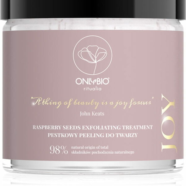 Natychmiastowe efekty Wyzwól pozytywne emocje i ciesz się świeżo wyglądającą cerą. Pestkowy peeling do twarzy Ritualia by OnlyBio to Twój nowy rytuał pielęgnacyjny, przynoszący natychmiastowe efekty i uśmiech! Enzymatyczną formułę z papainą i kwasami AHA wzbogaciliśmy pestkami z malin, truskawek oraz moreli. Dzięki temu martwy naskórek jest skutecznie złuszczany i usuwany, a komórki są pobudzone do odnowy. Rezultat? Jedwabiście gładka skóra, emanująca zdrowym blaskiem, który masz w sobie. Kremowa konsystencja Pestkowy peeling do twarzy OnlyBio cechuje kremowa konsystencja i relaksujący zapach, dlatego jego nakładanie – połączone z delikatnym masażem pobudzającym krążenie, zapewnia niezwykle przyjemne doznania. Zadbaliśmy o to, aby łagodnie oczyszczał i odblokowywał pory, nie naruszając cennej bariery lipidowej. Starannie dobrane i zbalansowane składniki, całkowicie wegańskie i w 98% pochodzenia naturalnego, dbają nie tylko wygląd, ale i kondycję Twojej skóry, abyś czuła się piękna każdego dnia. Nowa seria kosmetyków Ritualia to przepełnione dobrymi emocjami serie produktów do pielęgnacji twarzy i ciała. - To kremowe, sensualne konsystencje, niezrównanie skuteczne formuły i uzależniające zapachy. JOY ang. radość, zachwyt - To zachwycające konsystencje oczyszczające, które przynoszą radość i uwalniają energię. - To chwila uśmiechu przy codziennym rytuale pielęgnacyjnym i zadowolenie wywołane relaksującym zapachem. Składniki: Aqua, Cellulose, Caprylic/Capric Triglyceride, Cetearyl Alcohol, Glyceryl Stereate, Glycerin, Sodium Stearoyl Lactylate, Prunus Amygdalus Dulcis (Sweet Almond) Oil, Papaine, Aloe Barbadensis Leaf Juice, Fragaria Vesca (Strawberry) Seed, Prunus Armeniaca (Apricot) Seed Powder, Rubus Idaeus (Raspberry) Seed, Glycolic Acid, Helianthus Annuus (Sunflower) Seed Oil, Lactic Acid, Maltodextrin, Citric Acid, Benzyl Alcohol, Xanthan Gum, Dehydroacetic Acid, Tocopherol, Benzoic Acid, Parfum. Sposób użycia: Nałóż porcję peelingu na skórę twarzy i odczekaj 5 minut. Następnie wykonaj minutowy masaż i dokładnie spłucz. Pojemność: 50ml