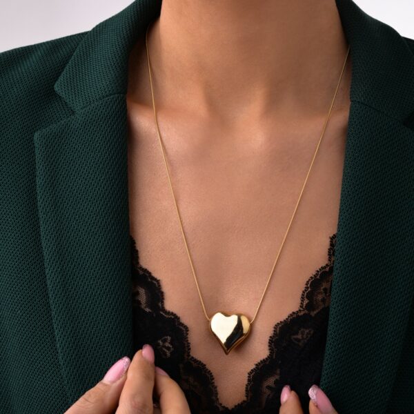 Długi naszyjnik serce, wykonany ze stali chirurgicznej/szlachetnej. Długość naszyjnika: ok. 61 cm. Średnica elementu ozdobnego ok: 2,2 cm. Typ Zapięcia : karabińczyk. Kolor: złoty.