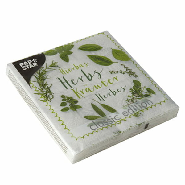 Serwetki papierowe 1-warstwowe "Mixed Herbs" składane w 1/4 Wymiary: 33 cm x 33 cm Kolor: multi Opakowanie: 20 szt.