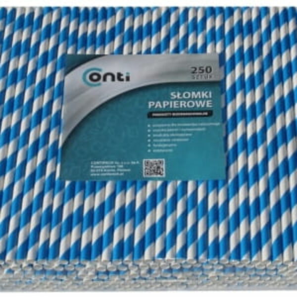 Słomka z papieru w paski niebieska 6 x 197 mm 250 szt