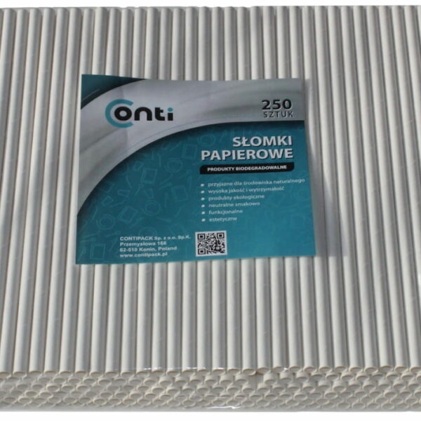 Ekologiczne słomki do napojów wykonane z papieru Średnica: 6 mm Długość: 197 mm Kolor: biały Pakowane po 250 sztuk