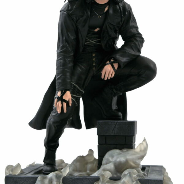 Crouching on a rooftop, Eric Draven stalks his prey in this all-new Gallery Diorama based on the cult-favorite movie The Crow! With the Crow on his shoulder and steam circling his feet, this approximately 10-inch sculpture is made of high-quality PVC and features detailed sculpting and paint applications. It comes packaged in a full-color window box. Designed by Caesar, sculpted by Rocco Tartamella.